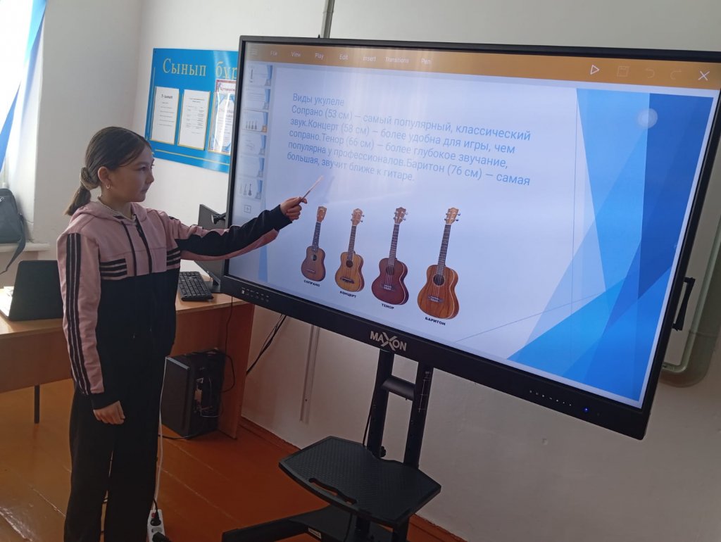 Жасанды интеллектті пайдалану. «Әлемнің музыкалық аспаптары» тақырыбы бойынша үй тапсырмасының презентациясы. Орыс тілі мен әдебиеті, 7 сынып.